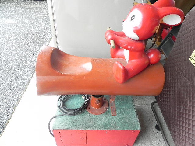 2017.7.13 ぴょんちゃんムーバー(乗り物) 価格:¥99,800(税込) 在庫数:完売 商品説明 商品状態:中古箱サイズ:幅45×奥行78×高さ1117cm エスエス製薬のキャラクター「ぴょんちゃん」のムーバーです。佐藤製薬のサトちゃんと並んで薬局前に置かれていました。10円玉を入れるコインメックは付いておらず電源直結です。 商品についてのお問い合わせ お名前 (必須) メールアドレス (必須) 電話番号 問い合わせ内容 (必須) 上記内容でお間違いがなければチェックを入れて送信ボタンを押してください。