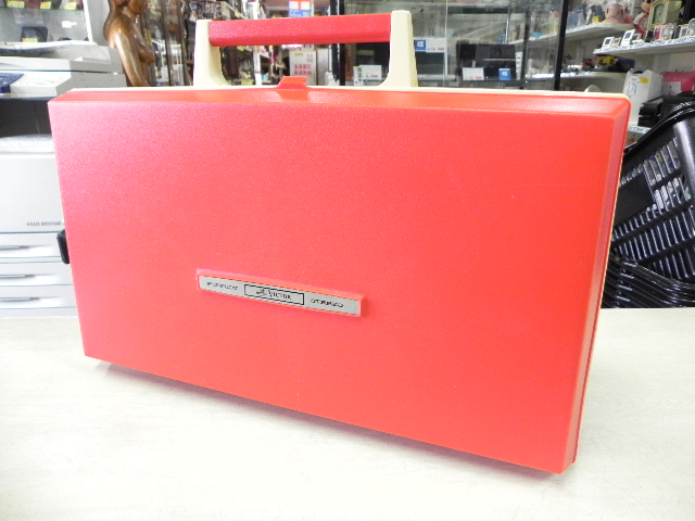 2017.7.14 ポータブルレコードプレイヤー Victor PE-8400 価格:¥9,800(税込) 在庫数:1 商品説明 商品状態:中古サイズ:幅45×奥行31×厚さ10cm アメリカンPOPな赤と白のデザインのレコードプレイヤーです。電源は必要ですが、持ち運びができて簡単にレコードを楽しめる画期的なアイテムでした。ポータブルの割にはスピーカーがしっかりしていて、いい音が出ています。iPodの元祖みたいな存在ですね。 商品についてのお問い合わせ お名前 (必須) メールアドレス (必須) 電話番号 問い合わせ内容 (必須) 上記内容でお間違いがなければチェックを入れて送信ボタンを押してください。