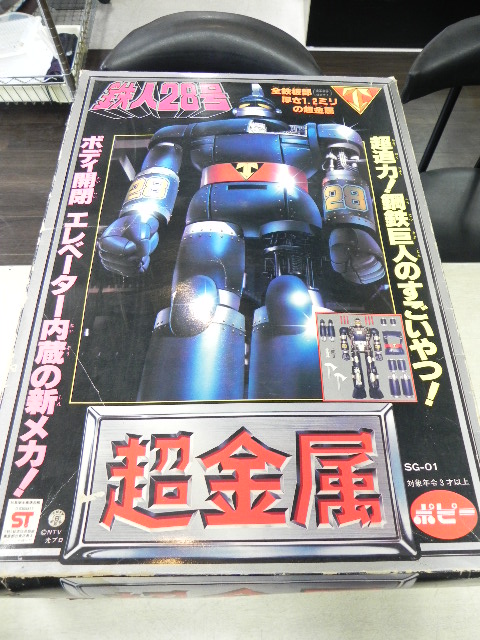 2017.10.28 ポピー 超金属 鉄人28号 価格:¥未定(税込) 在庫数:1 商品説明 商品状態:中古箱サイズ:幅40×高さ56cm×厚さ12cm1980~81年に放映された「太陽の使者鉄人28号」という番組の玩具。指が動いたり、付属の金田正太郎に磁石がついて鉄人にくっつくなどレベルの高い玩具。当時の定価は、8,800円。ルーブル美術館に展示されたこともある逸品です。 商品についてのお問い合わせ お名前 (必須) メールアドレス (必須) 電話番号 問い合わせ内容 (必須) 上記内容でお間違いがなければチェックを入れて送信ボタンを押してください。